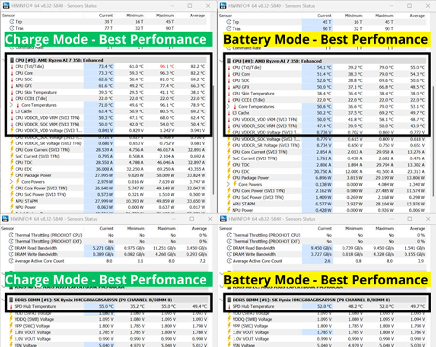 Hasilnya, pengguna dapat memilih mode kerja sesuai kebutuhan—performa maksimal saat terhubung adaptor, atau kenyamanan suhu dan kebisingan saat bekerja menggunakan baterai.